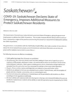 COVID-19: Saskatchewan Declares State of Emergency